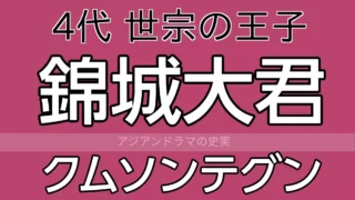 王子 錦城大君(クムソンテグン)とは 端宗を守ろうとして処刑された世宗の六男 錦城大君(クムソンテグン)は世宗の六男で端宗の叔父にあたる王族です。世祖 首陽大君 に対抗し、端宗復位をめざした生涯や最期、ドラマ 王女の男 との違いまで分かりやすく解説します。 2017.09.06 2026.03.06 王子